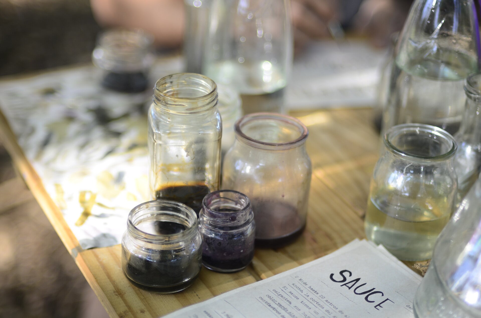 En la tercera instancia proponemos un taller plástico. Brindamos: láminas para colorear con una ilustración en blanco y negro, impresas en papel reciclado, tintas vegetales hechas con residuos de verduras, frutas, hojas y agua de cocción de legumbres. Queremos incorporar cada vez más acciones que colaboren al cuidado de los recursos.